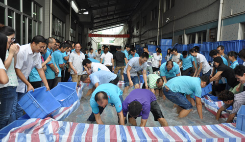 母愛有聲,父愛如禪。為感恩父親,弘揚傳統孝道文化,廣東金達在父親節來臨之際,舉辦夏日抓魚比賽,200多名父親,在搭建的水池里,“混”水摸魚,個個都彰顯出強勁抓魚實力,歡笑聲、戲水聲、加油聲充斥整個現場,用最可愛、最有趣的方式來歡賀父親節。