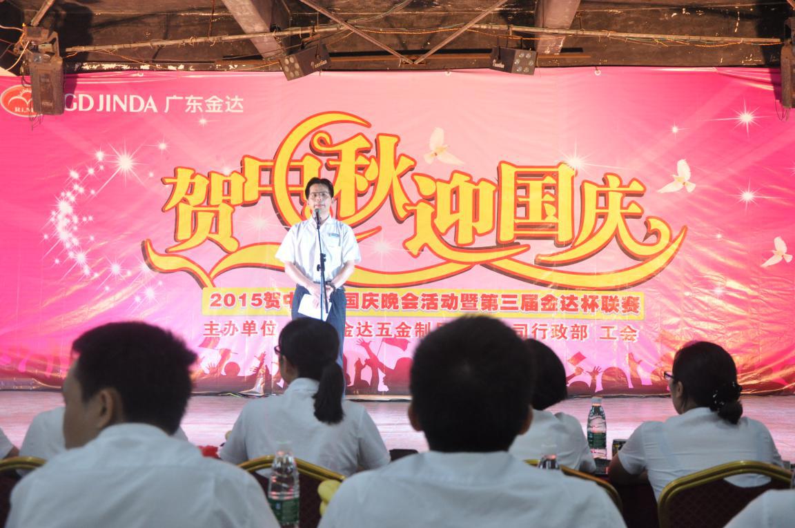 9月25日18:30;2015賀中秋、迎國慶聯歡晚會活動暨第三屆金達杯,在金達公司綜合樓舉行。參會人員由日美公司代表、歐美達公司代表、新朗達公司代表以及金達員工共計八百多人出席。在這個普天同慶、花好月圓的日子里,我們歡聚一堂,共度此時。