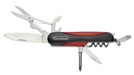 功能:1、開(kāi)罐器 2、剪刀 3、大刀 4、十字螺絲刀 5、指甲銼(指甲除垢器) 6、螺旋開(kāi)瓶器7、開(kāi)瓶器(一字螺絲刀) 8、匙圈
