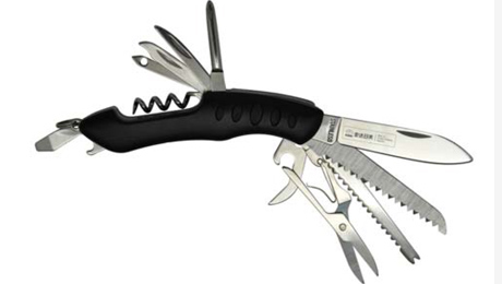 產品參數: 規格:95X28X20mm 重量:116.6g 材質:鋁+2Cr13不銹鋼 功能:1、開罐器 2、剪刀 3、大刀 4、十字螺絲刀 5、指甲銼(指甲除垢器) 6、螺旋開瓶器 7、開瓶器(一字螺絲刀) 8、匙圈 等