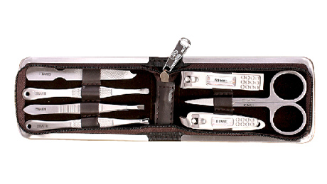 包裝規(guī)格:102mm*61mm*24mm 單套重量:108.8g 材質(zhì):PU+430不銹鋼 配件:RMT625E指甲鉗、美容剪、斜口指甲鉗、指甲銼、耳挖、死皮刀、眉夾